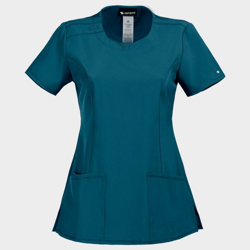 Tunică medicală pentru femei, cu decolteu rotund și tratament antimicrobian, care oferă protecție suplimentară și prospețime pe tot parcursul zilei. Parte din colecția Cherokee Infinity, ce combină designul modern cu funcționalitatea.