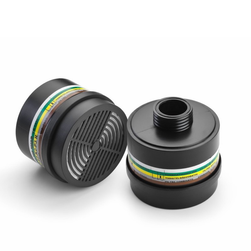 Filtru combinat gaz/praf cu racord universal conform standardului EN 148-1 pentru protecție împotriva gazelor și vaporilor organici cu punct de fierbere peste 65°C, gaze anorganice, gaze acide, dioxid de sulf (SO2), amoniac (NH3) și organice ale acestuia derivate, praf, fum și ceață. Filtrul poate fi utilizat cu o mască integrală PANAREA sau cu o semimască EURMASK DIN sau cu alte măști similare care sunt echipate cu o conexiune universală conform EN 148-1, EN 14387