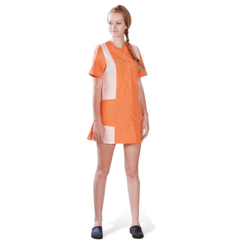 Halat de damă, bicolor, cu mâneca scurtă, cu închidere cu nasturi.