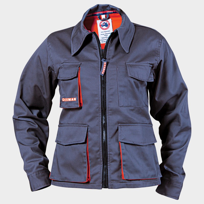 Jachetă cu buzunare multifuncționale și închidere cu fermoar.