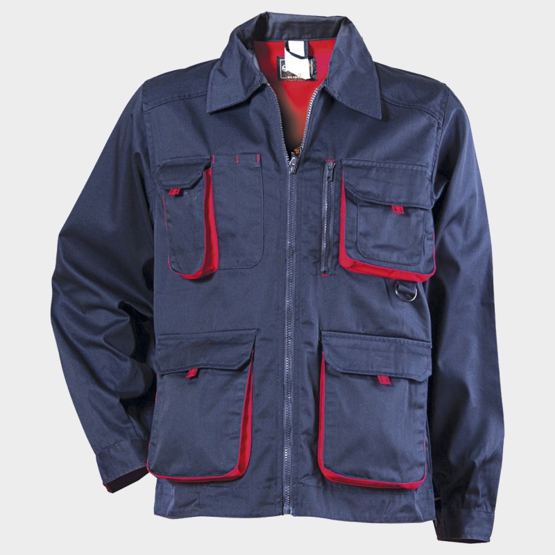 Jachetă de lucru cu buzunare voluminoase, coate întarite și închidere cu fermoar.