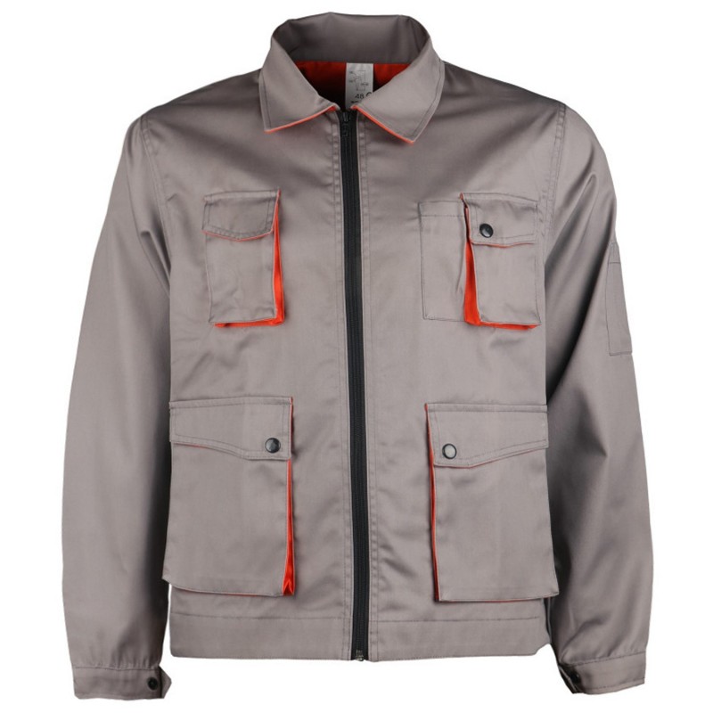Jachetă de lucru cu două buzunare voluminoase cu nasturi tip capse, două buzunare la piept.