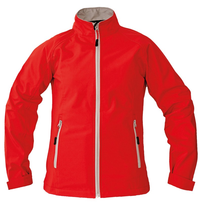 Ladie's softshell jacket with contrast zippers and adjustable width of the sleeves through Velcro fastening. Made of light double layer softshell. Water column- 8000 mm MATERIAL: 75D polyester, inner material: tricot, 230 g/m²