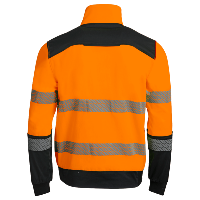Jachetă de lucru cu vizibilitate ridicată, ce combină confortul, funcționalitatea și vizibilitatea sporită datorită materialului elastic și benzilor reflectorizante.
