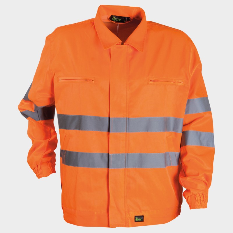 Jachetă de culoare semnală cu benzi reflectorizante.