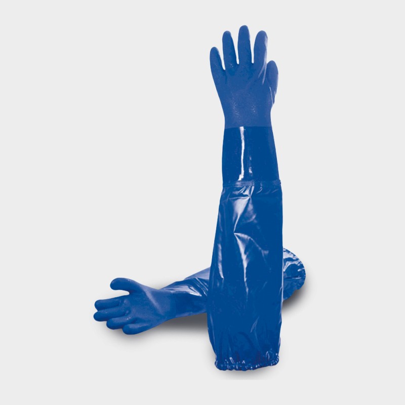 Mănuși din bumbac de tricot complet topite în PVC, rezistente la acizi. Lungime de 62 cm.