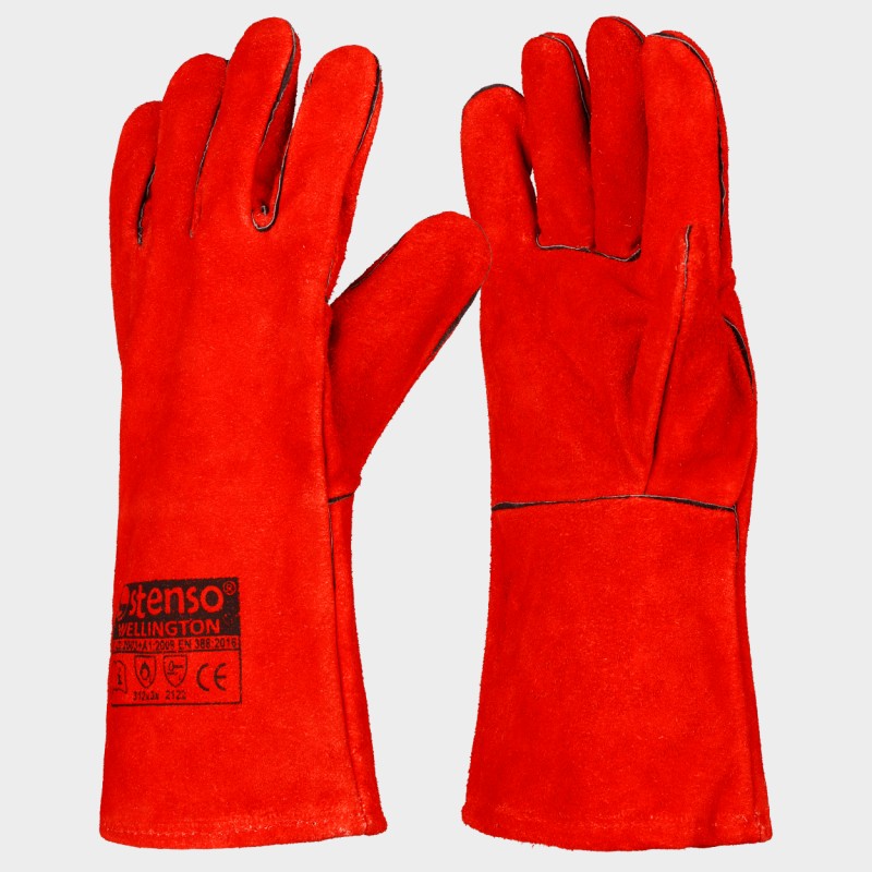 Mănuși pentru sudori tip A cu cinci degete, din piele de vițel despicat cu căptușeală din bumbac, întărită în zona palmei, cusături ascunse