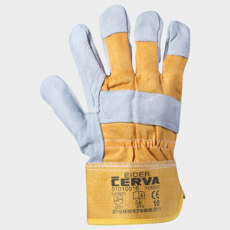 Mănuși din piele de vițel pe palmă, degete mari și arătători cu vârfuri din piele, spatele mănușii, produs din material de bumbac.