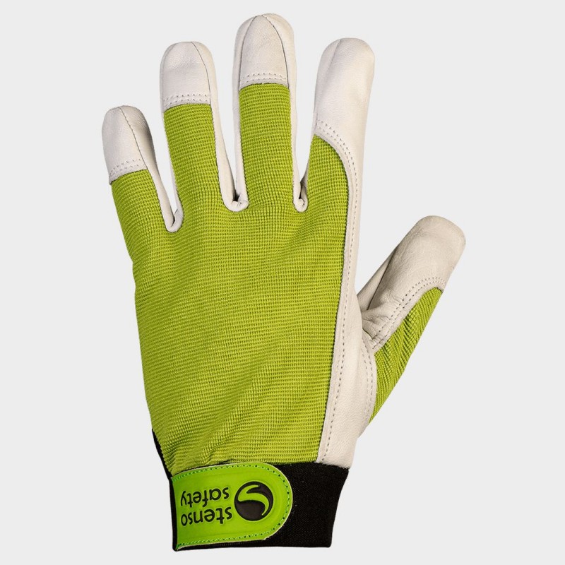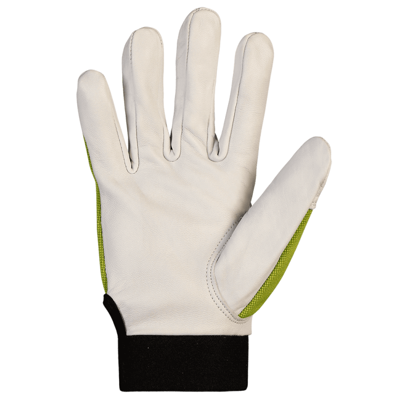 Mănuși din piele de iezi, fină pe palmă, spate respirabil din material de bumbac, manșetă reglabilă cu velcro.