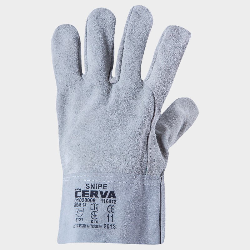 Mănuși din piele de vițel despicată, necăptușită, cu manșetă întărită, lățime de 7 cm