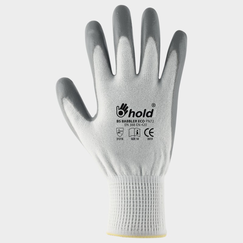 Mănuși din tricot de poliester fără cusături, înmuiat în nitril, spate respirabil, manșetă elastică.