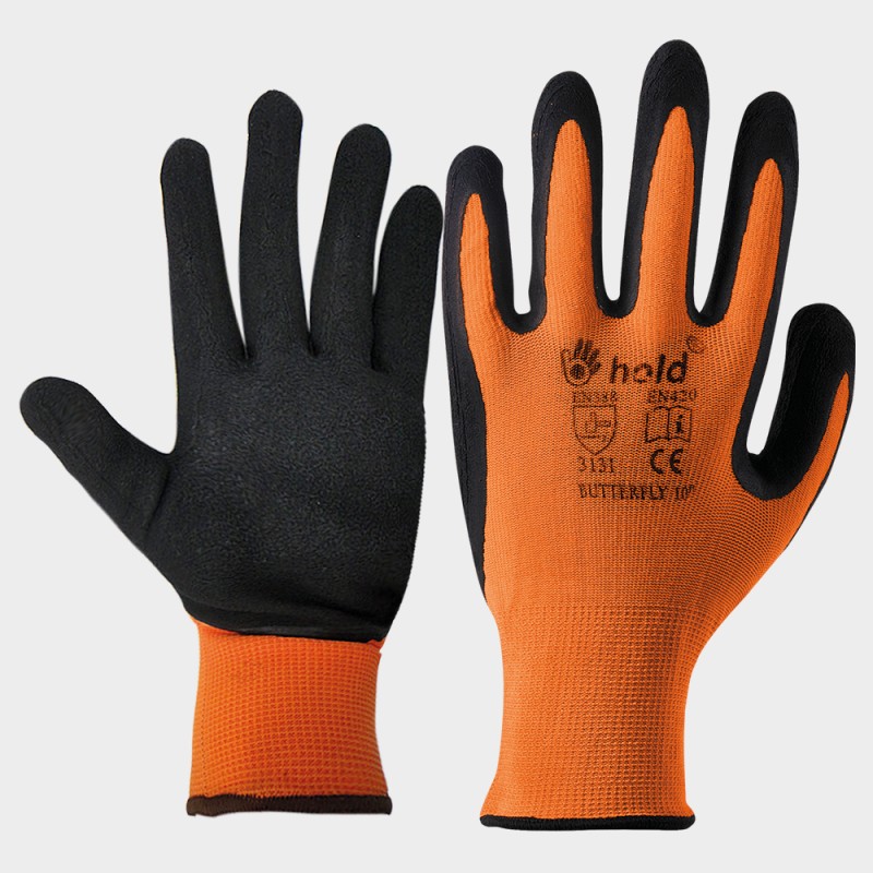 Mănuși tricotate, din poliamidă, înmuiate în spumă de latex pe palmă, degete, manșetă elastică, respirabilă.
