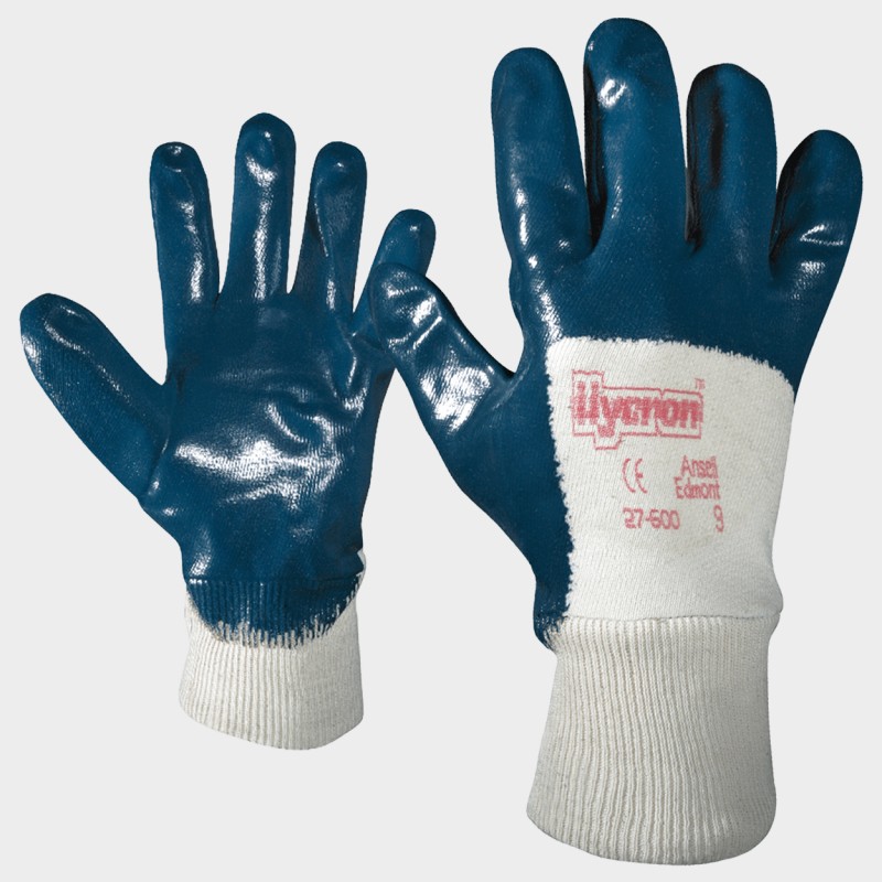 Mănuși din jerseu de bumbac și manșetă elastică, complet scufundate în nitril. Rezistent la ulei și protecție mecanică. Acoperirea completă previne pătrunderea uleiului în mănușă și, în același timp, protejează întreaga mână împotriva materialelor aspre și abrazive