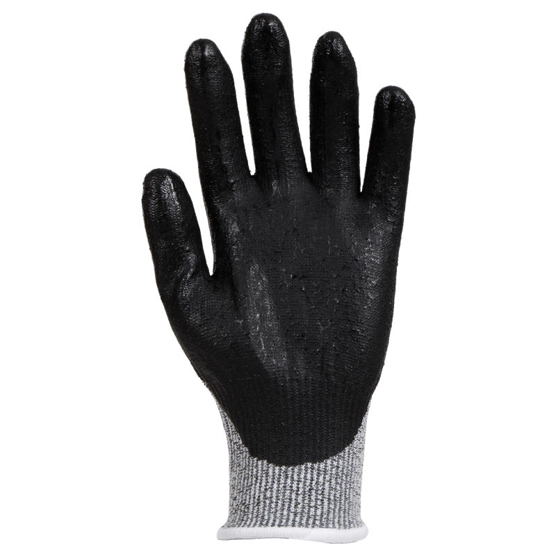 Mănuși rezistente la tăiere (nivel D) fabricate din HPPE, fibre de oțel și poliester, topite în spumă de nitril pentru protecție și confort optim în timpul lucrului.
