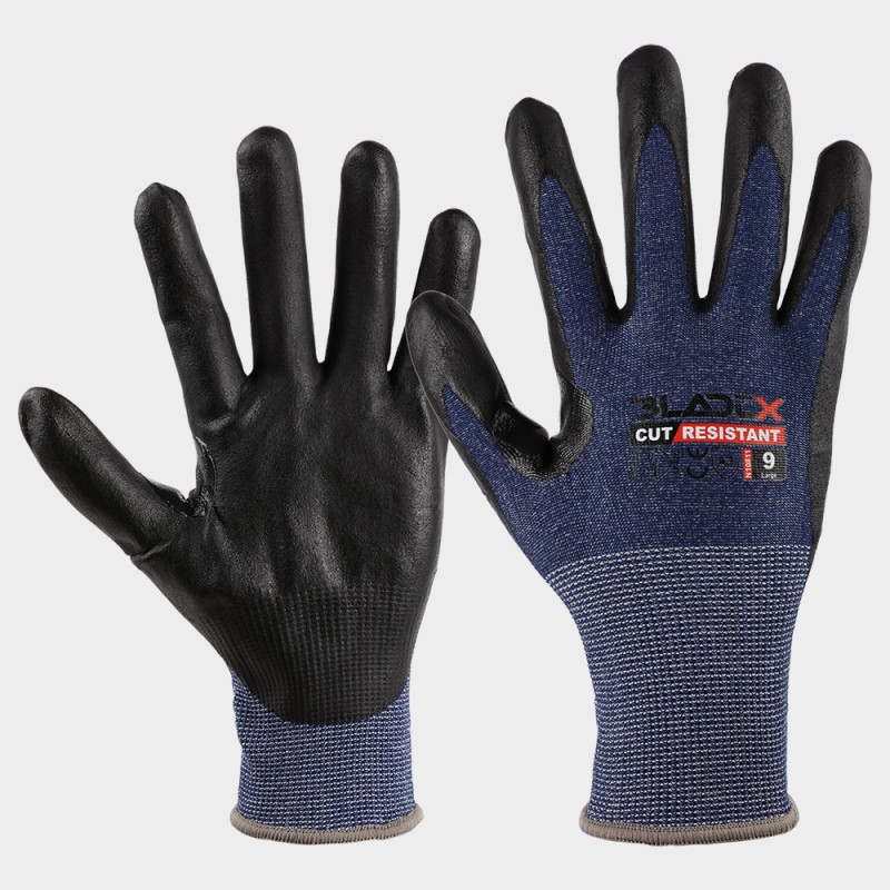 Mănuși rezistente la tăiere din tricotaje fără cusutură - fibre GOLDSILK / fibre revoluționare de polietilenă cu greutate moleculară ridicată și rezistență mare la forfecare /. Stratul de spumă de nitril oferă protecție într-un mediu ușor gras și o aderență perfectă în orice situație