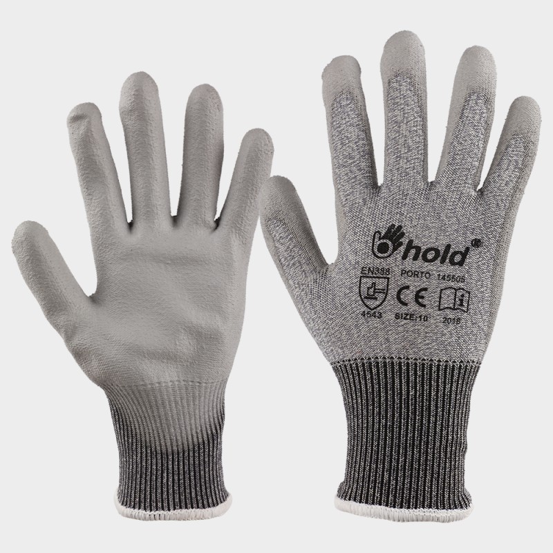 Tricot din poliester cu fire de sticlă, rezistent la tăiere nivel 5, topit în poliuretan, manșetă elastică.