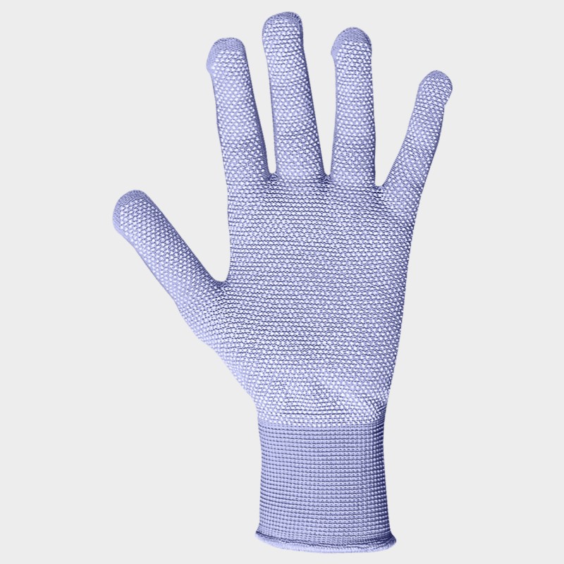 Mănuși produse din tricot de poliester fără cusături cu picături de polimer pe palmă și degete, manșetă elastică.