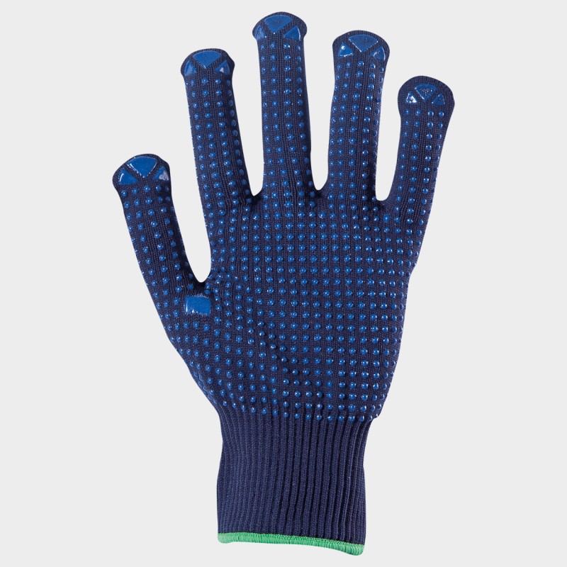 Mănuși făcute din tricot de poliester fără cusături cu picături de polimer pe palmă și degete, manșetă elastică.