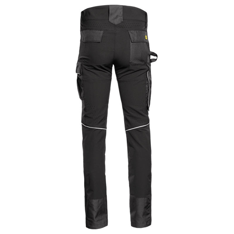 Pantaloni elastici impermeabili, curea cu detalii elastice din partea laterală pentru confort sporit și inserție în zona spatelui pentru o mai mare libertate de mișcare. Dispune de buzunare frontale deschise, un buzunar lateral dublu pentru instrumente și un buzunar pentru genunchi din material rezistent la abraziune, care se deschide din partea de sus. Caracteristicile suplimentare includ detalii reflectorizante, un nasture ascuns și un design ergonomic al picioarelor cu lungime reglabilă.