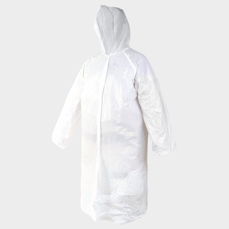 Pelerină de ploaie de polietilenă de unică folosință, 1200 mm X 750 mm, grosime 0,015 mm.