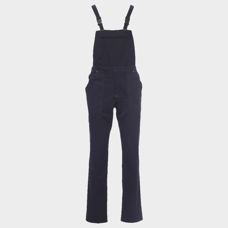 Salopetă cu protecție renală amplă, bretele elastice și cataramă cu fixare rapidă, deschidere laterală cu nasturi și închidere a clapei cu fermoar, bandă elastică în talie. Cusătură dublă în zona șlițului și în interiorul piciorului. Buzunar pe piept cu suport ecuson și închidere cu fermoar, două buzunare frontale și buzunar pentru pix, buzunar pe partea dreaptă dedicat ruletei de măsurat și un buzunar spate cu clapă de închidere și velcro.