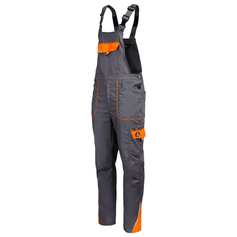 Pantaloni de salopete PRISMA LIGHT STRETCH GRI/PORTOCALIU