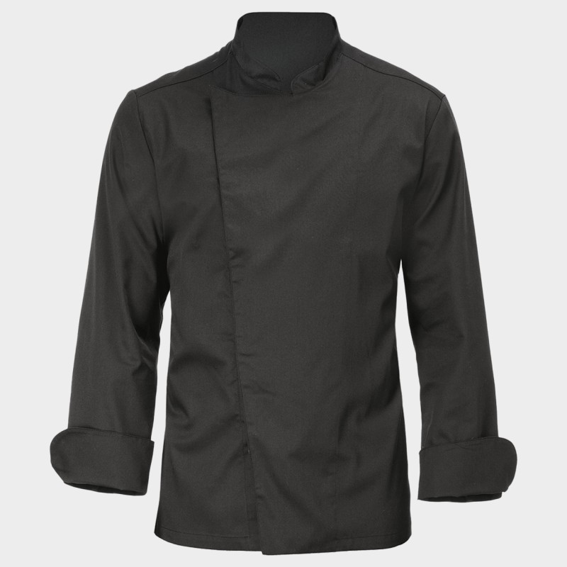 Tunica pentru bucătar cu mâneci lungi, închidere cu nasturi. Buzunar superior ascuns în zona pieptului. Buzunar pentru termometru pe mâneca stângă.