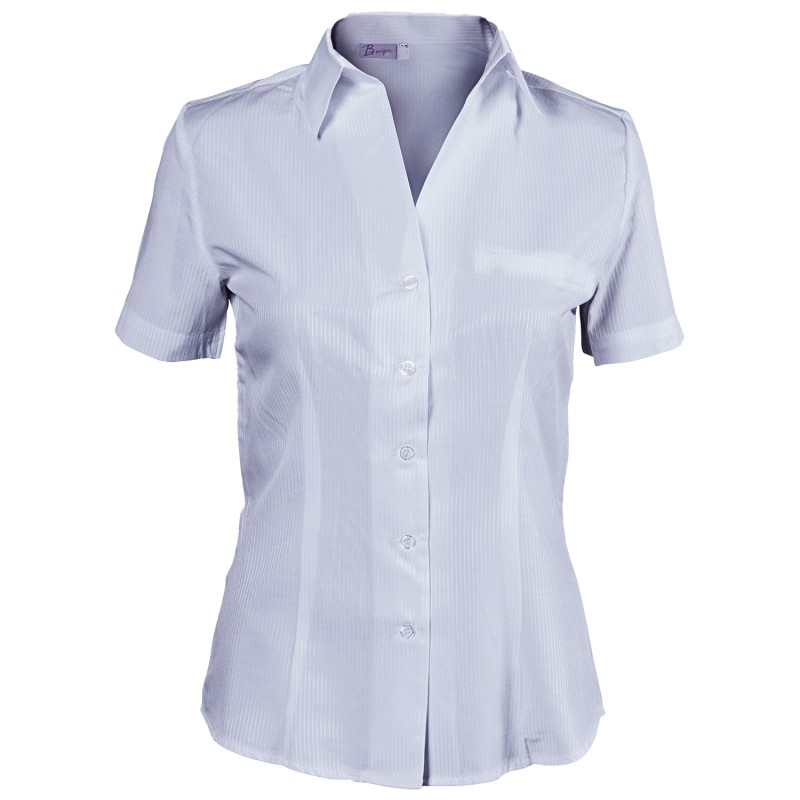 Cămașă mulată cu mânecă scurtă pentru femei. Închidere și imitație la buzunar superior cu clapă.