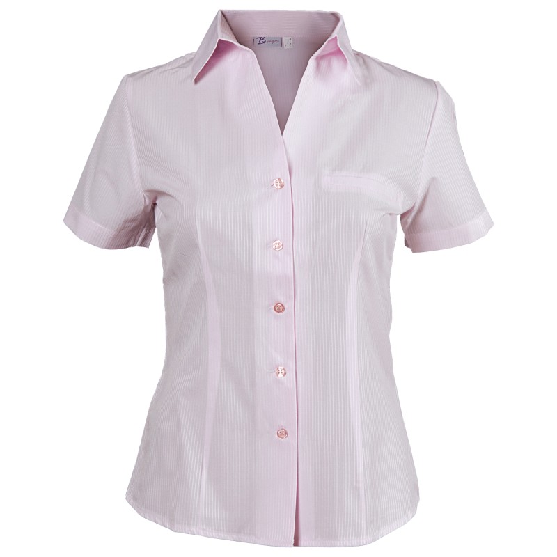 Cămașă mulată cu mânecă scurtă pentru femei. Închidere și imitație la buzunar superior cu clapă.